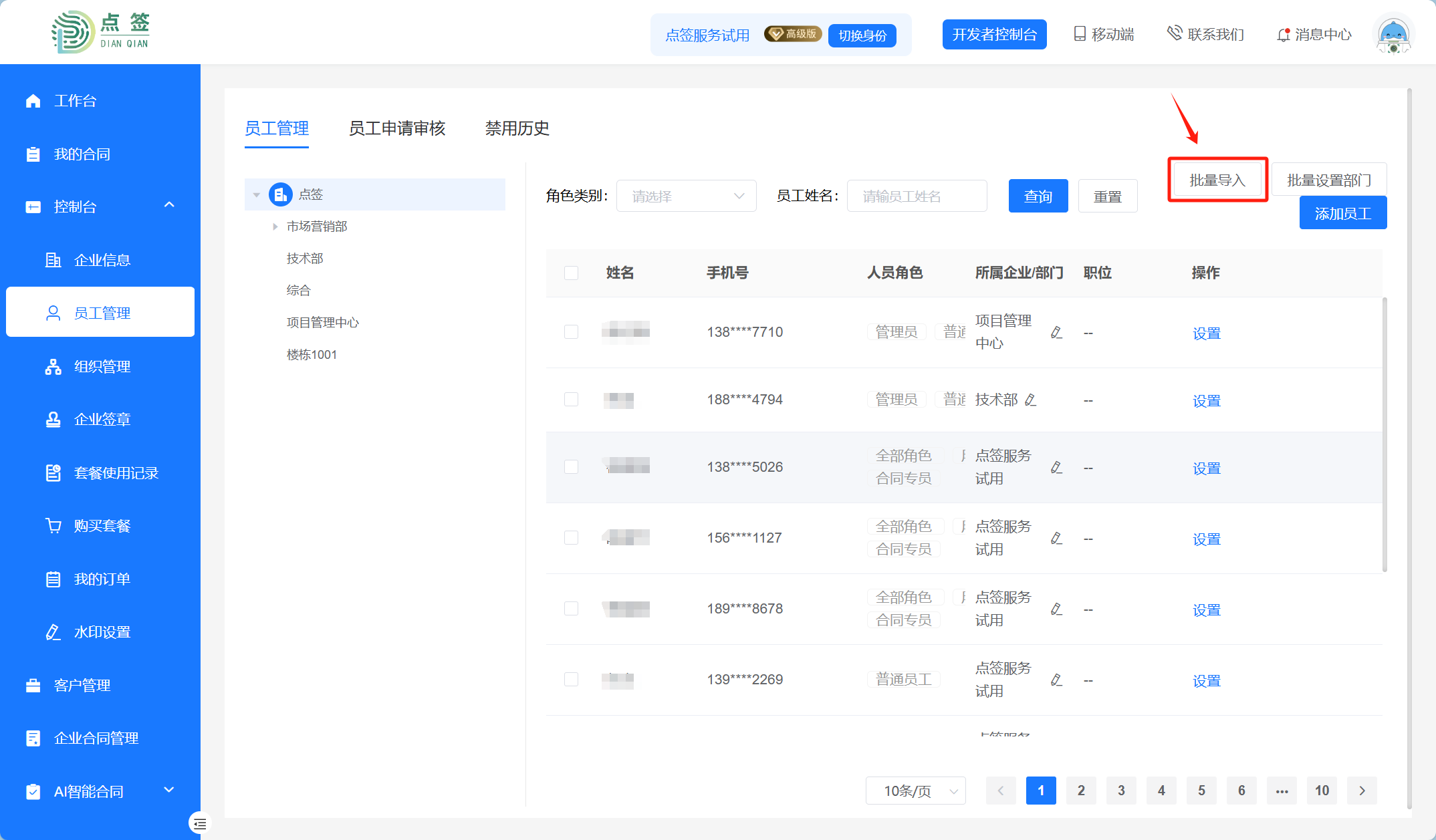 进入控制台-员工管理界面-添加员工,可让员工申请加入或手动邀请员工加入